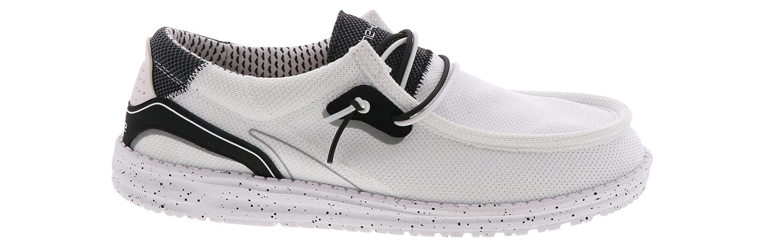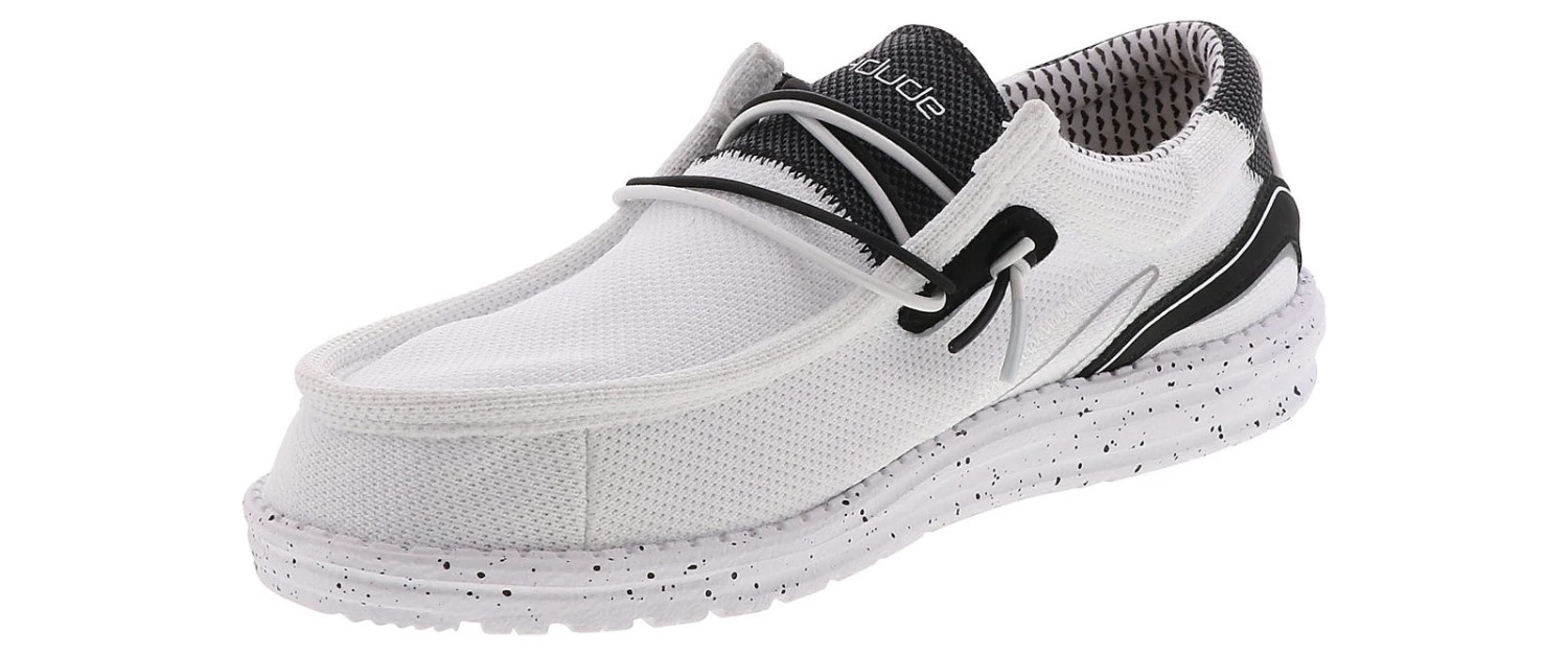 Match every outfit with the Hey Dude Wally Hawk Men’s Casual Shoe! This lightweight shoe comes built with a stretch knit upper and elastic laces to keep your feet snug. The Flex and Fold technology and convenient slip-on features will quickly make this shoe your favorite. The speckled lightweight outsole allows for easy and simple strides. The Hey Dude Wally Hawk Men’s Casual Shoe is one of a kind!