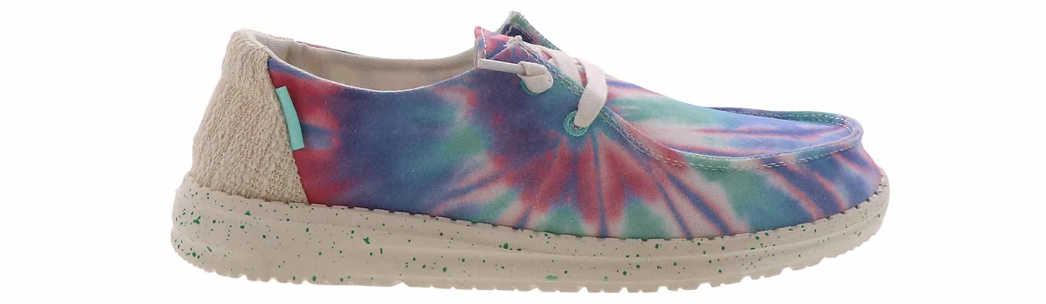 Add a pop of color to your casual outfit with the Hey Dude Wendy Women’s Casual Shoe! This style has a canvas upper with a colorful tie-dye print and no-tie laces. The memory foam insole will form perfectly to your foot, while the Ultra-Light outsole is lightweight and comfortable. Get comfort and support in every step with the Hey Dude Wendy Women’s Casual Shoe!