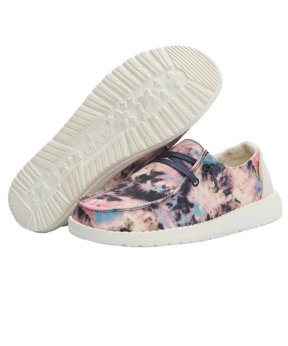 Cotton Canvas Upper; Wide Comfortable Fit; Ergonomic, Leather Lined, Removable Memory Foam Insole; Machine Washable; Flex And Fold Technology; Color: Navy And Pink Tie Dye; UltraLIGHT Outsole; Style #121415043