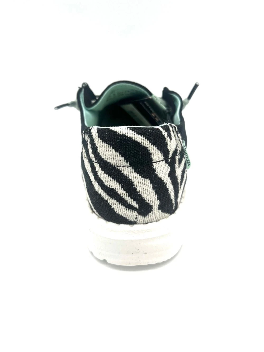 Wendy Woven Zebra, the exotic side of Hey Dude for women. Fun patterns and prints in this collection.  Still made with the Hey Dude easy-on system featuring elastic laces and an ultralight outsole to keep you going all day long.Â