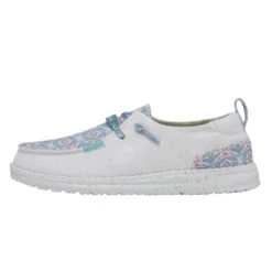 This Wendy is built with a breathable, chambray-blend upper and is finished off on the Hey Dude ultralight outsole. It is designed with an easy-on system that features no-tie cotton laces. Enjoy this classic style slip-on.